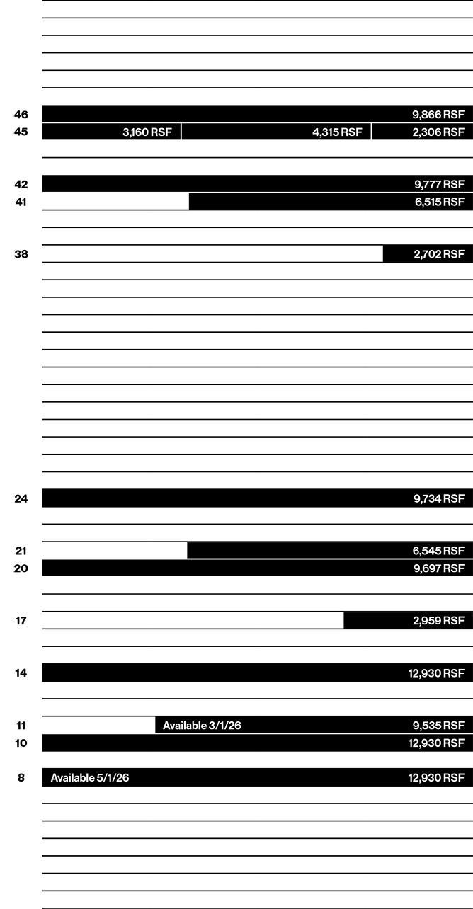 Enjoy the luxury of true focus, elevated above New York City’s most iconic avenue—an address to truly impress. Private, prestigious and undeniably premium; every moment here raises the everyday into the extraordinary. Each boutique floor plate comprises up to 9,800 RSF, with partial to full floor available. Presiding over Midtown, endless city views meet moments of reflection and determination, while a coveted Central Park backdrop inspires what’s next.